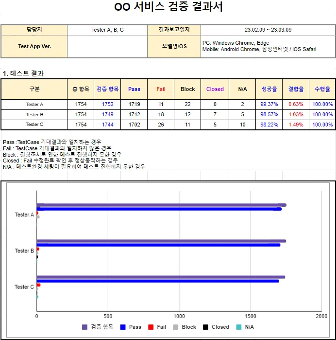 - 기획서 기반 TestCase 제작 및 TestCase 수행