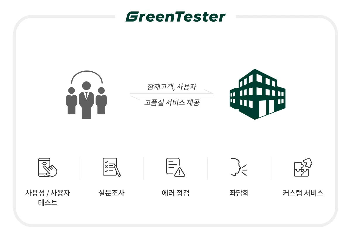 그린테스터는 작은 스타트업부터 공공 기관까지 총 100개 이상의 서비스를 개선하였습니다.