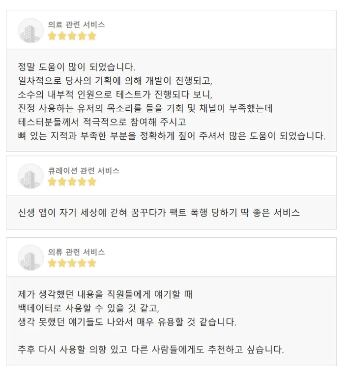 그린테스터는 작은 스타트업부터 공공 기관까지 총 100개 이상의 서비스를 개선하였습니다.