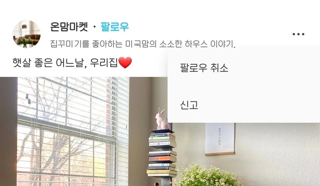 2. 점세개 눌러서 팔로우 신청하는 것도 이미 팔로우 되어있으면 첫줄에 팔로우 취소가 뜨고 팔로우 안되어있으면 팔로우가 떠야하는데 팔로우 되어있어도 팔로우가 뜨고 팔로우 안되어있어도 팔로우 취소가 뜨는 경우가 랜덤으로 있는거같아요